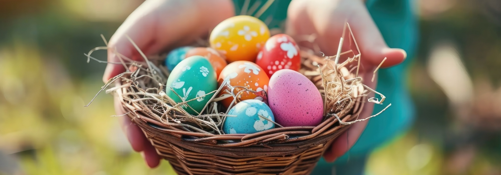 oeufs de pâques décorés dans panier